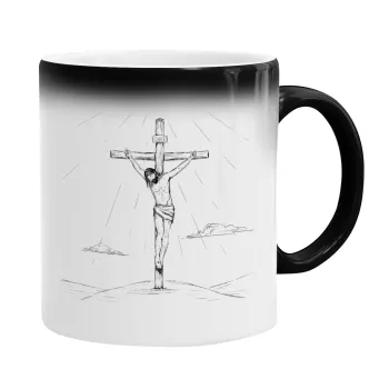 Jesus Christ , Color changing magic Mug, ceramic, 330ml when adding hot liquid inside, the black colour desappears (1 pcs)