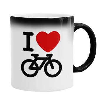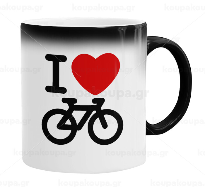 I love Bike, Color changing magic Mug, ceramic, 330ml when adding hot liquid inside, the black colour desappears (1 pcs)
