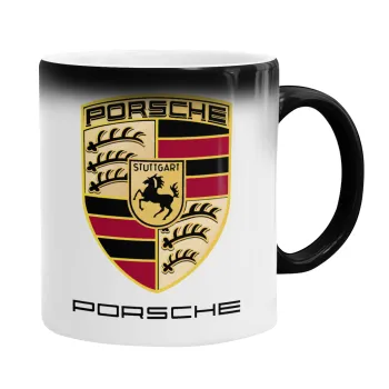 Porsche, Color changing magic Mug, ceramic, 330ml when adding hot liquid inside, the black colour desappears (1 pcs)
