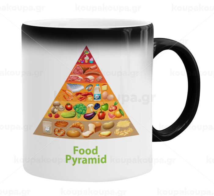 Food pyramid chart, Color changing magic Mug, ceramic, 330ml when adding hot liquid inside, the black colour desappears (1 pcs)