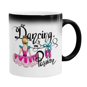 Dancing is my Passion, Color changing magic Mug, ceramic, 330ml when adding hot liquid inside, the black colour desappears (1 pcs)