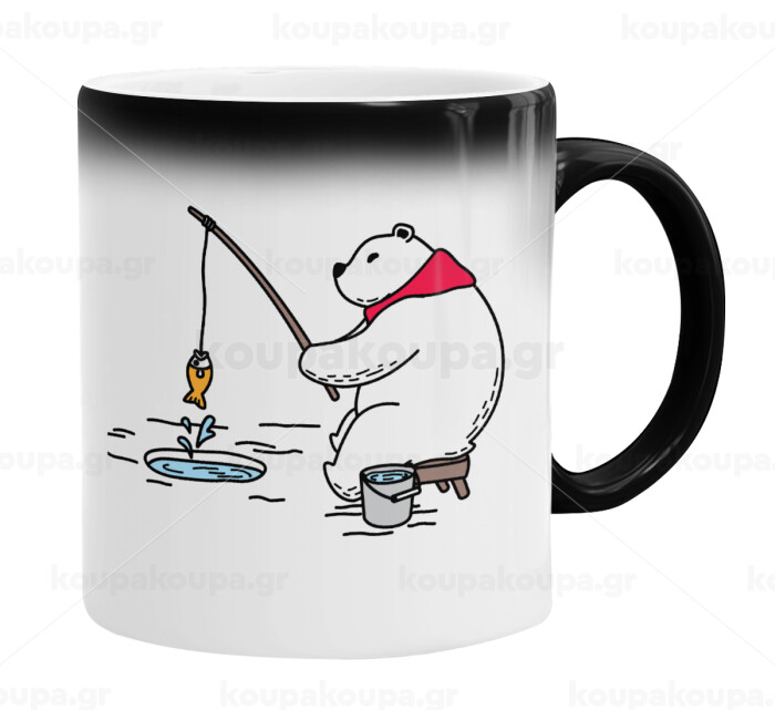 Bear fishing, Color changing magic Mug, ceramic, 330ml when adding hot liquid inside, the black colour desappears (1 pcs)