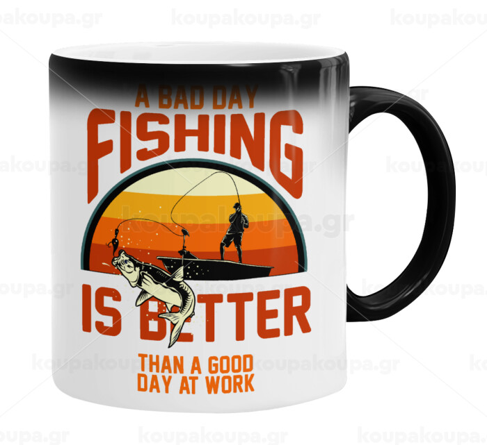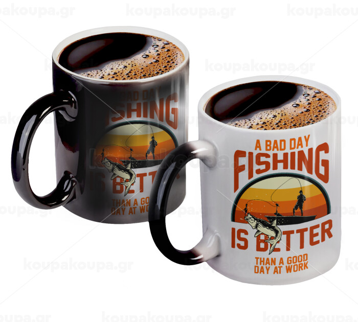 A bad day FISHING is better than a good day at work, Color changing magic Mug, ceramic, 330ml when adding hot liquid inside, the black colour desappears (1 pcs)