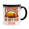 A bad day FISHING is better than a good day at work, Color changing magic Mug, ceramic, 330ml when adding hot liquid inside, the black colour desappears (1 pcs)