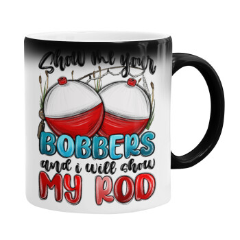 Show me your bobbers and i will show my rod , Color changing magic Mug, ceramic, 330ml when adding hot liquid inside, the black colour desappears (1 pcs)