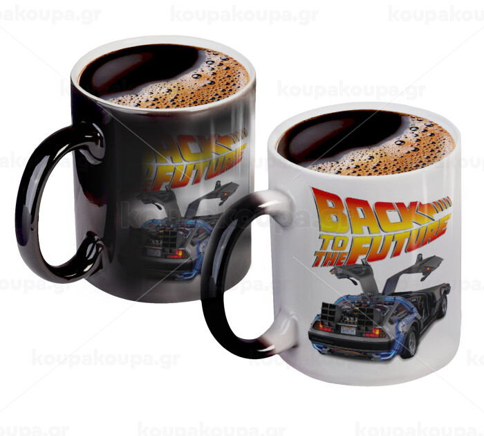Back to the future, Color changing magic Mug, ceramic, 330ml when adding hot liquid inside, the black colour desappears (1 pcs)