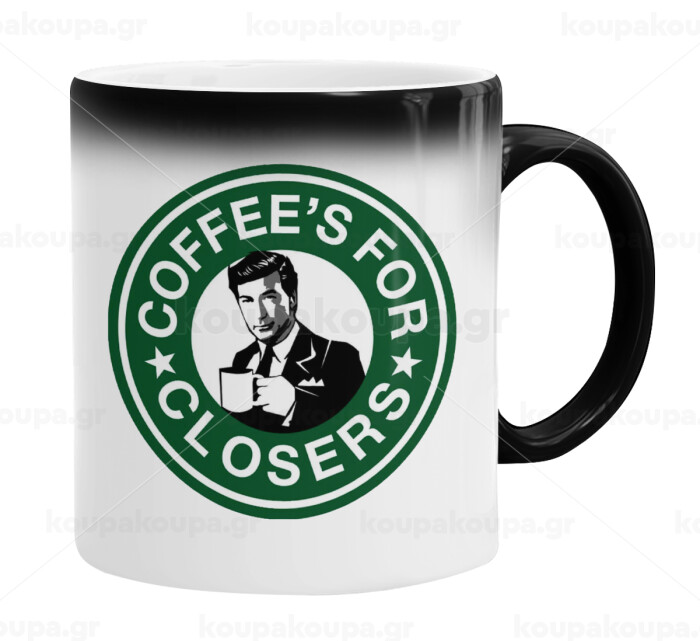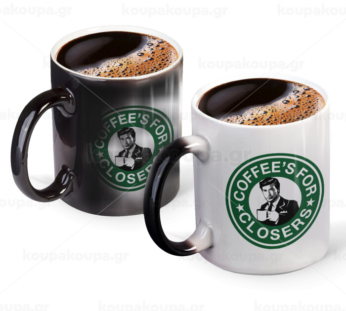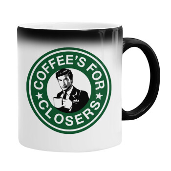 Coffee's for closers, Color changing magic Mug, ceramic, 330ml when adding hot liquid inside, the black colour desappears (1 pcs)