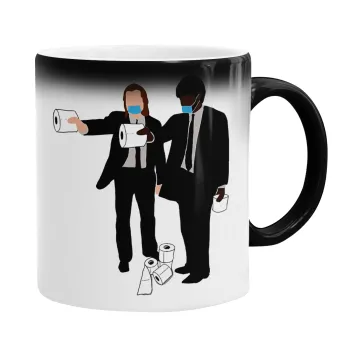 Pulp Fiction 3 meter away, Color changing magic Mug, ceramic, 330ml when adding hot liquid inside, the black colour desappears (1 pcs)