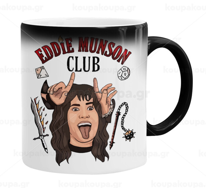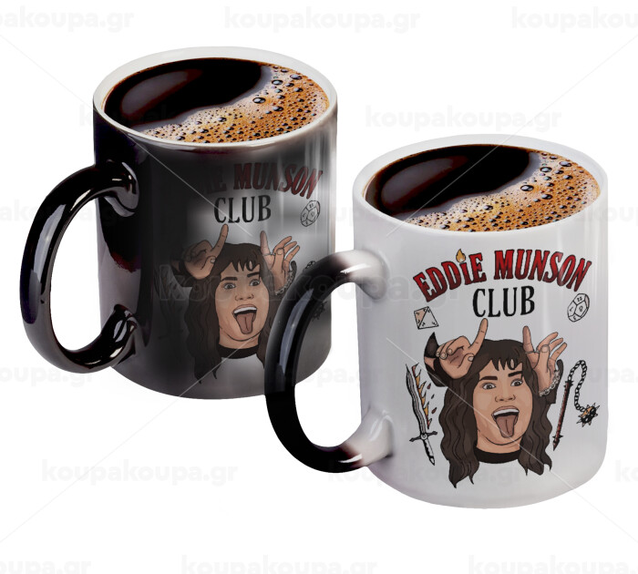 Eddie Munson, Hellfire CLub, Stranger Things, Color changing magic Mug, ceramic, 330ml when adding hot liquid inside, the black colour desappears (1 pcs)