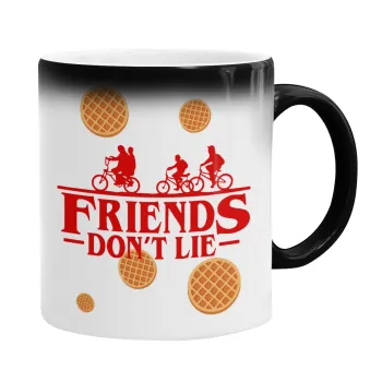 Friends Don't Lie, Stranger Things, Color changing magic Mug, ceramic, 330ml when adding hot liquid inside, the black colour desappears (1 pcs)