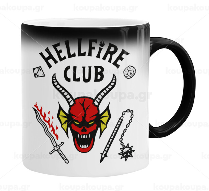 Hellfire CLub, Stranger Things, Color changing magic Mug, ceramic, 330ml when adding hot liquid inside, the black colour desappears (1 pcs)