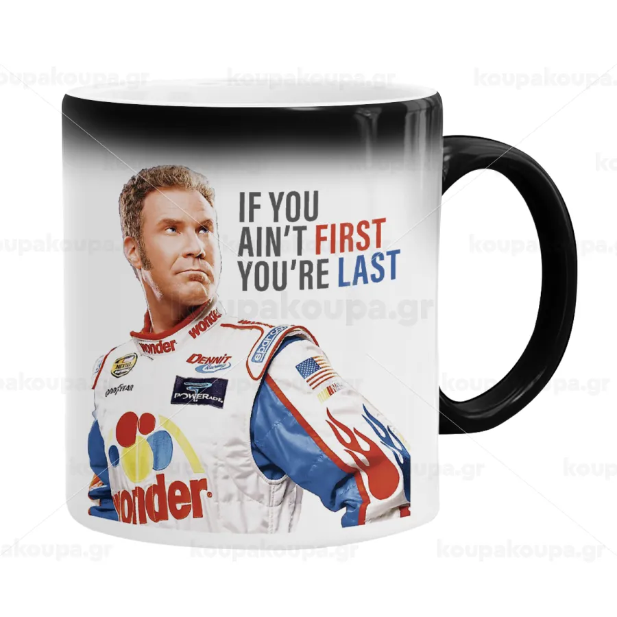 If You Ain't First You're Last Ricky Bobby, Talladega Nights, Color changing magic Mug, ceramic, 330ml when adding hot liquid inside, the black colour desappears (1 pcs)