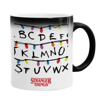 Stranger Things ABC, Color changing magic Mug, ceramic, 330ml when adding hot liquid inside, the black colour desappears (1 pcs)