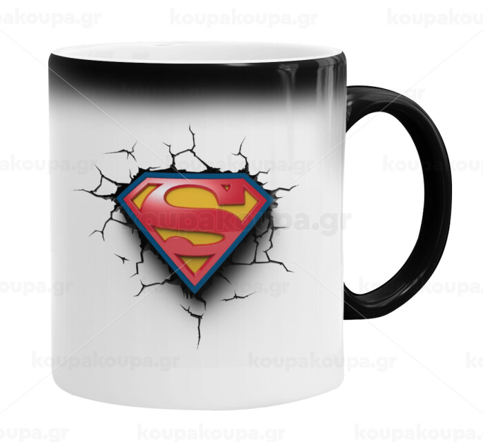 Superman cracked, Color changing magic Mug, ceramic, 330ml when adding hot liquid inside, the black colour desappears (1 pcs)