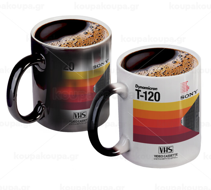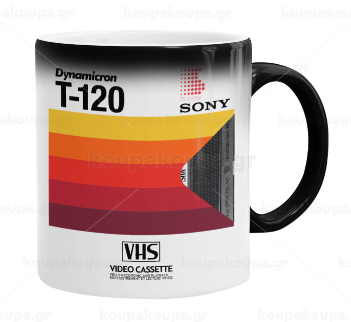 VHS sony dynamicron T-120, Color changing magic Mug, ceramic, 330ml when adding hot liquid inside, the black colour desappears (1 pcs)