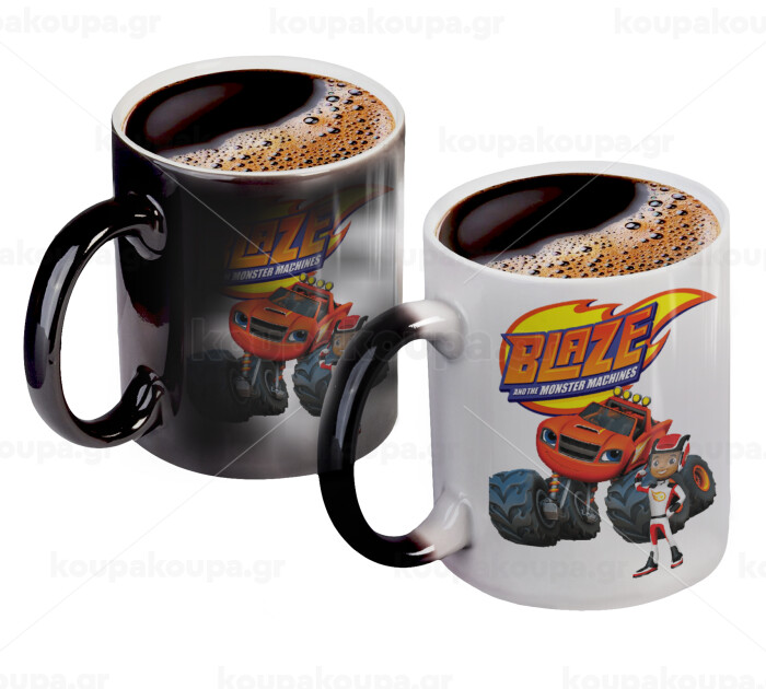 Ο Μπλέιζ και οι Φίλοι του, Color changing magic Mug, ceramic, 330ml when adding hot liquid inside, the black colour desappears (1 pcs)