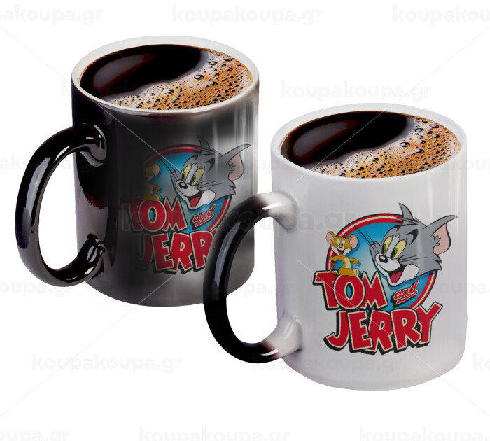 Tom and Jerry, Color changing magic Mug, ceramic, 330ml when adding hot liquid inside, the black colour desappears (1 pcs)