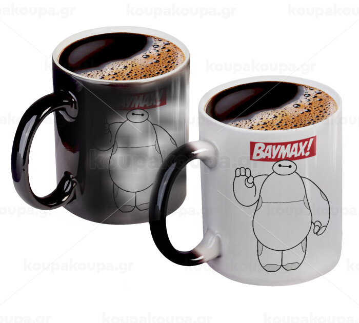 Baymax hi, Color changing magic Mug, ceramic, 330ml when adding hot liquid inside, the black colour desappears (1 pcs)