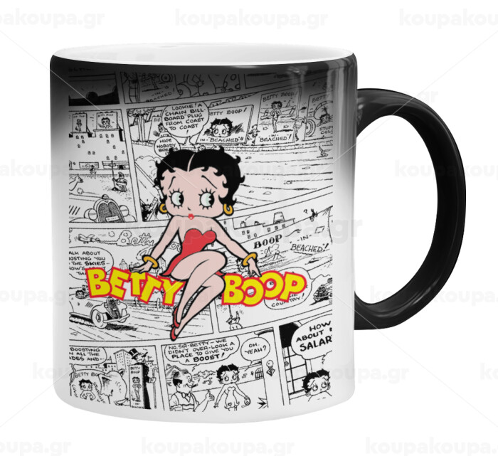 Betty Boop, Color changing magic Mug, ceramic, 330ml when adding hot liquid inside, the black colour desappears (1 pcs)