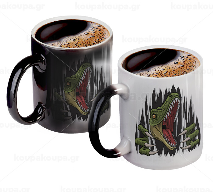 Dinosaur scratch, Color changing magic Mug, ceramic, 330ml when adding hot liquid inside, the black colour desappears (1 pcs)