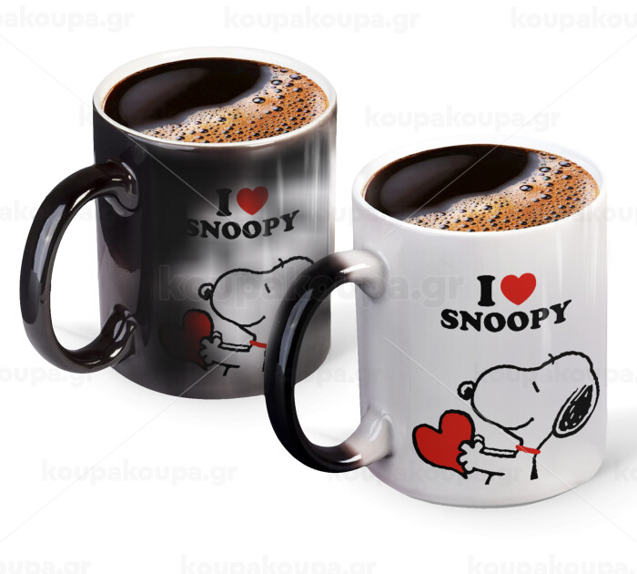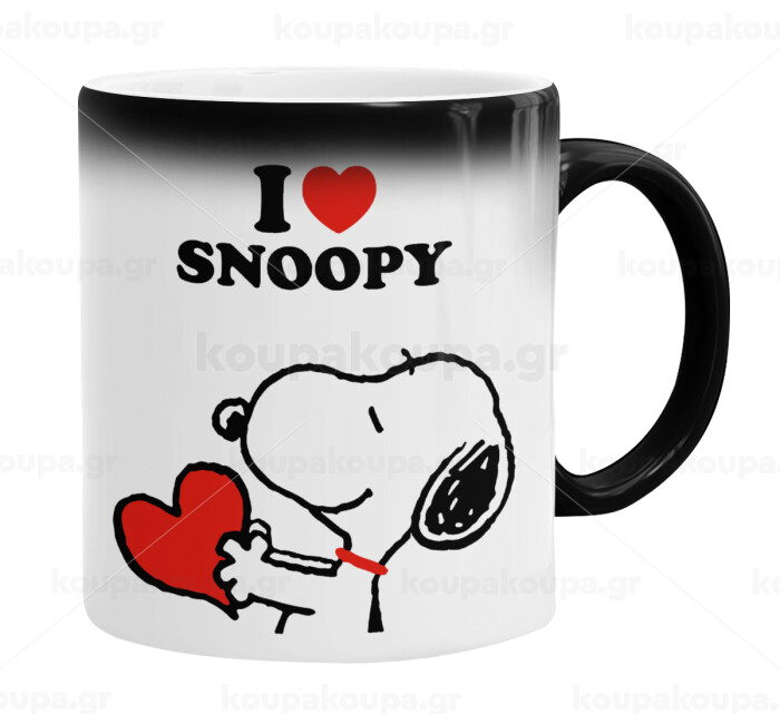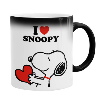 I LOVE SNOOPY, Color changing magic Mug, ceramic, 330ml when adding hot liquid inside, the black colour desappears (1 pcs)