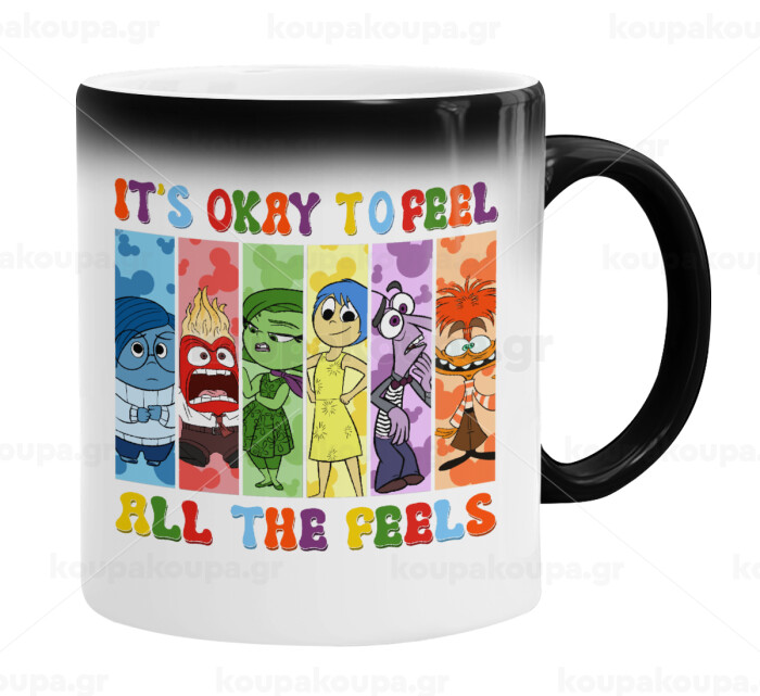 Inside Out It's Okay To Feel All The Feels , Color changing magic Mug, ceramic, 330ml when adding hot liquid inside, the black colour desappears (1 pcs)