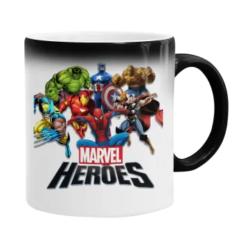 MARVEL heroes, Color changing magic Mug, ceramic, 330ml when adding hot liquid inside, the black colour desappears (1 pcs)