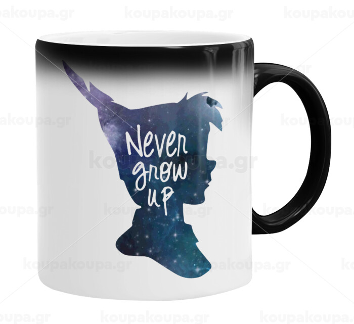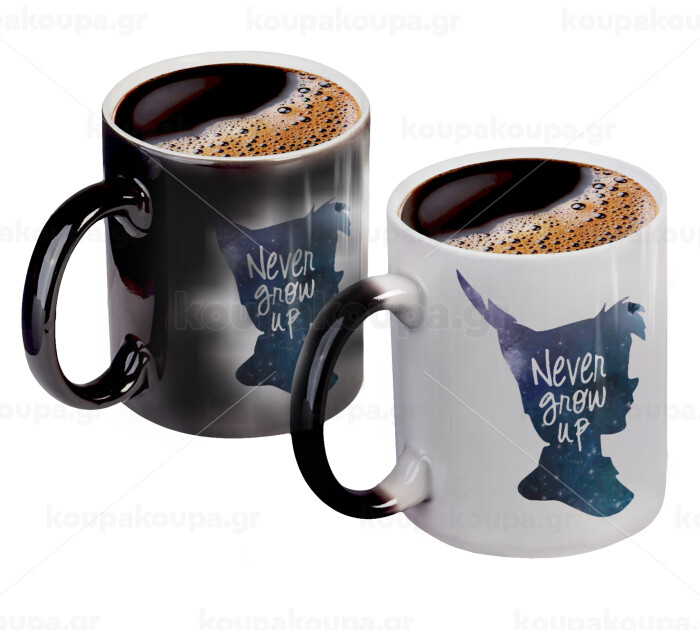 Never Grow UP, Color changing magic Mug, ceramic, 330ml when adding hot liquid inside, the black colour desappears (1 pcs)