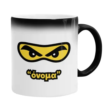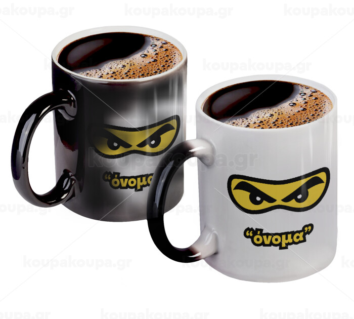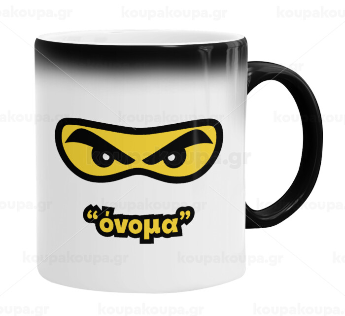 Ninja Eyes με όνομα, Color changing magic Mug, ceramic, 330ml when adding hot liquid inside, the black colour desappears (1 pcs)