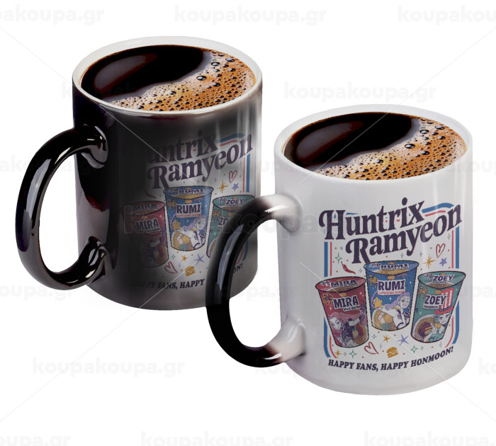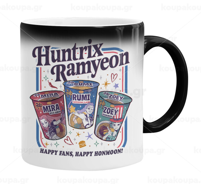 Ramyeon Huntrix, Color changing magic Mug, ceramic, 330ml when adding hot liquid inside, the black colour desappears (1 pcs)