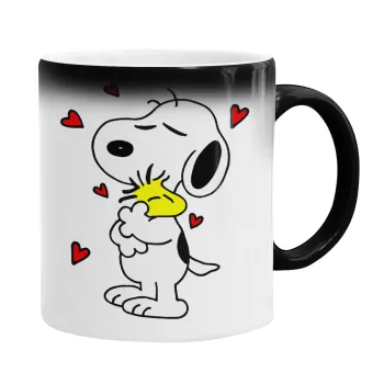Snoopy Love, Color changing magic Mug, ceramic, 330ml when adding hot liquid inside, the black colour desappears (1 pcs)