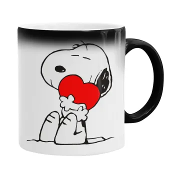 Snoopy, Color changing magic Mug, ceramic, 330ml when adding hot liquid inside, the black colour desappears (1 pcs)