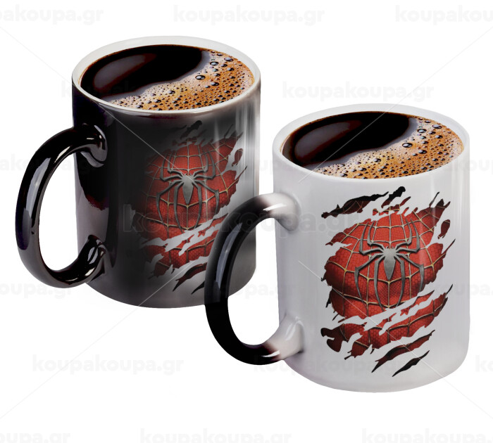 Spiderman cracked, Color changing magic Mug, ceramic, 330ml when adding hot liquid inside, the black colour desappears (1 pcs)