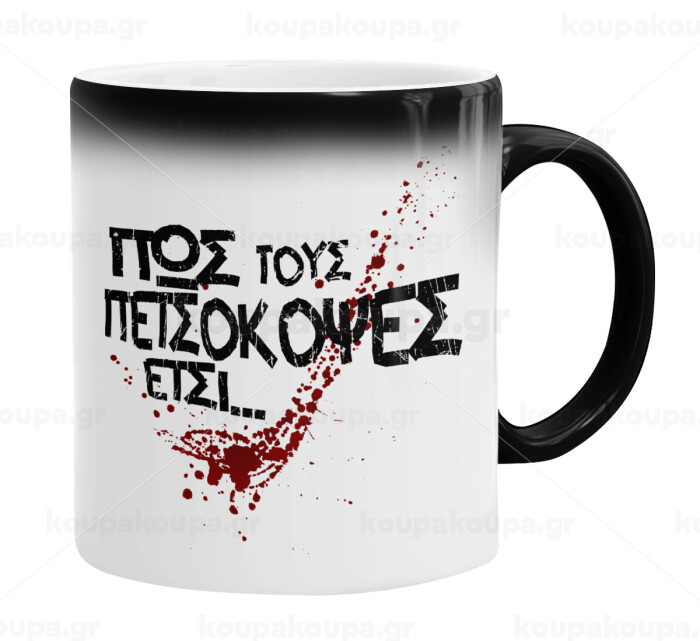 Πως τους πετσόκοψες έτσι..., Color changing magic Mug, ceramic, 330ml when adding hot liquid inside, the black colour desappears (1 pcs)