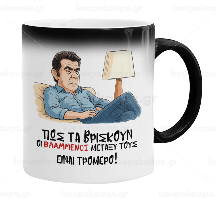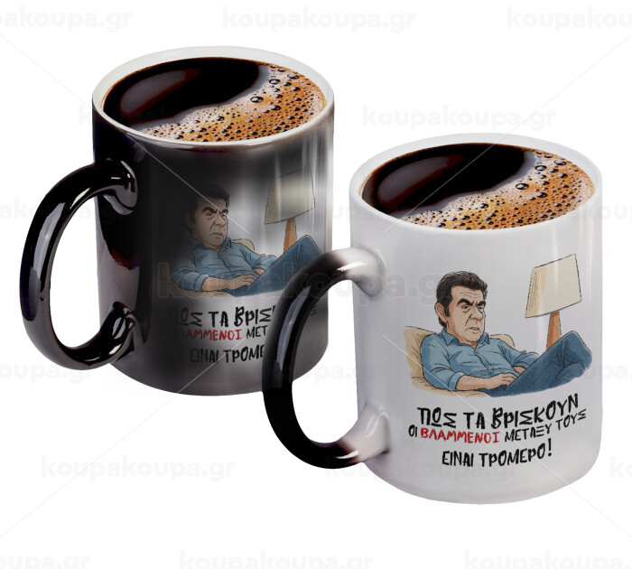 ΠΩΣ ΤΑ ΒΡΙΣΚΟΥΝ ΟΙ ΒΛΑ....ΝΟΙ ΜΕΤΑΞΥ ΤΟΥΣ, ΕΙΝΑΙ ΤΡΟΜΕΡΟ!!!, Color changing magic Mug, ceramic, 330ml when adding hot liquid inside, the black colour desappears (1 pcs)