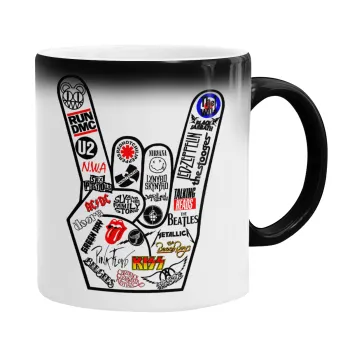 Best Rock Bands hand, Color changing magic Mug, ceramic, 330ml when adding hot liquid inside, the black colour desappears (1 pcs)