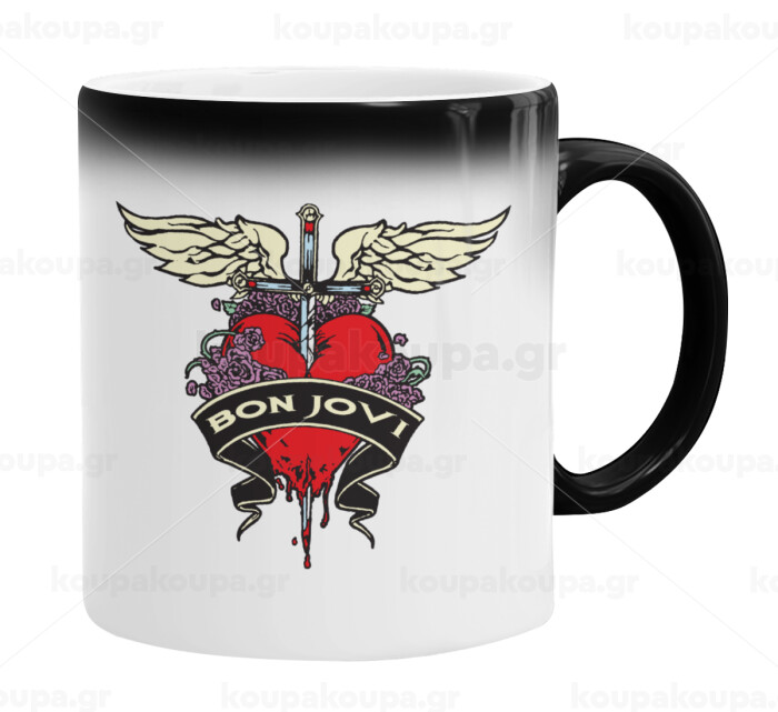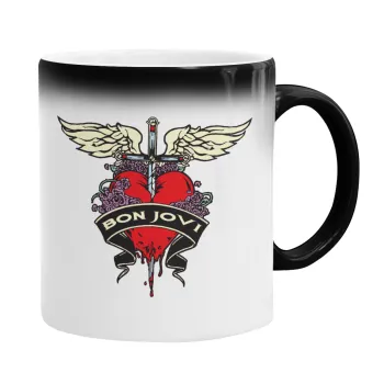 Bon Jovi, Color changing magic Mug, ceramic, 330ml when adding hot liquid inside, the black colour desappears (1 pcs)