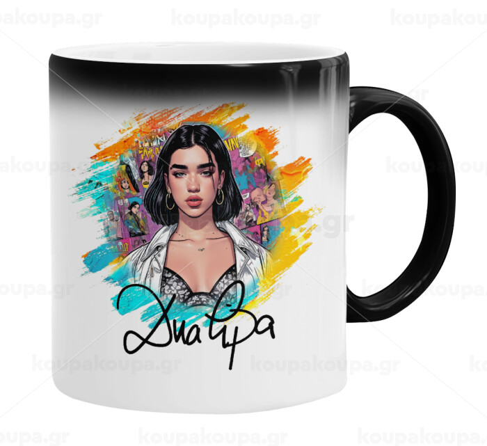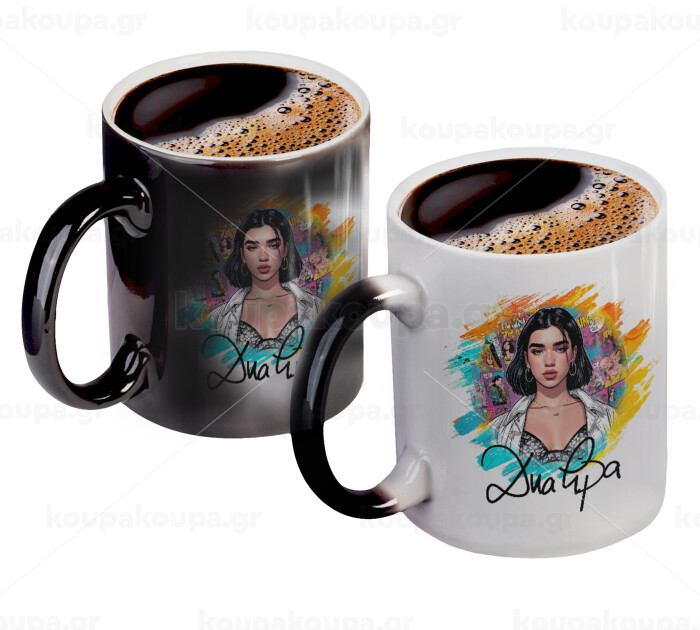 Dua lipa, Color changing magic Mug, ceramic, 330ml when adding hot liquid inside, the black colour desappears (1 pcs)