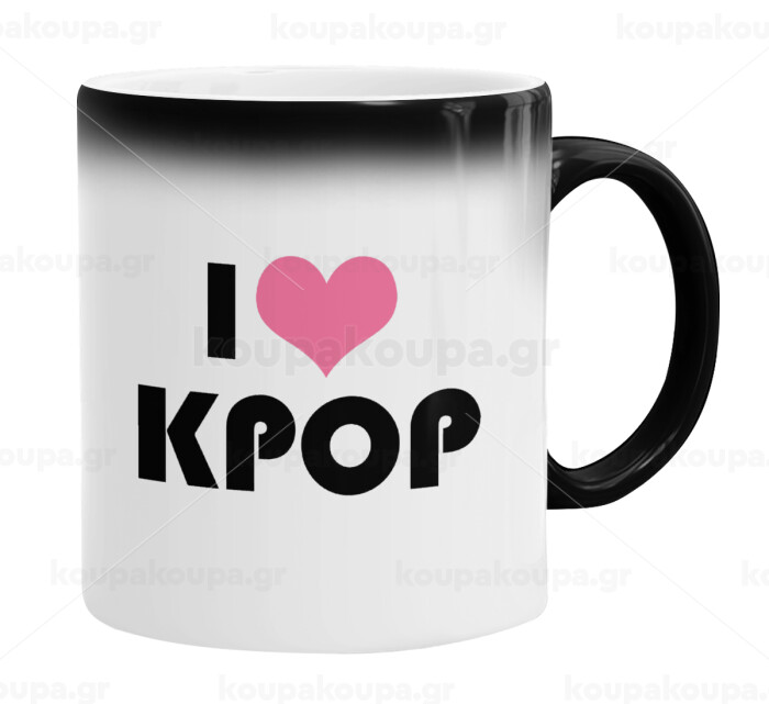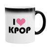 I Love KPOP, Color changing magic Mug, ceramic, 330ml when adding hot liquid inside, the black colour desappears (1 pcs)
