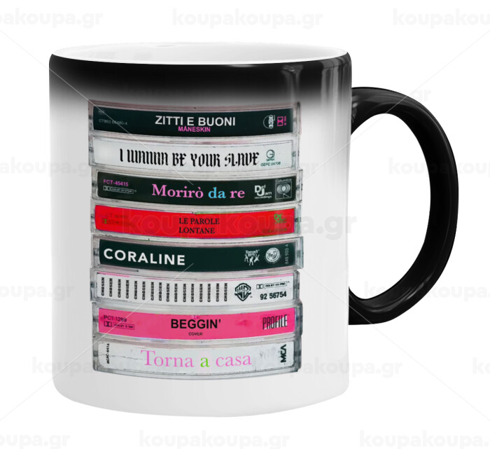 Maneskin Cassette, Color changing magic Mug, ceramic, 330ml when adding hot liquid inside, the black colour desappears (1 pcs)