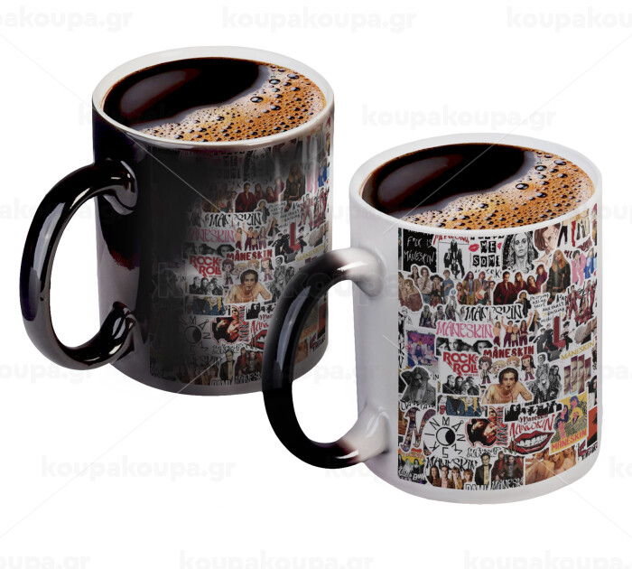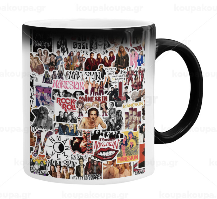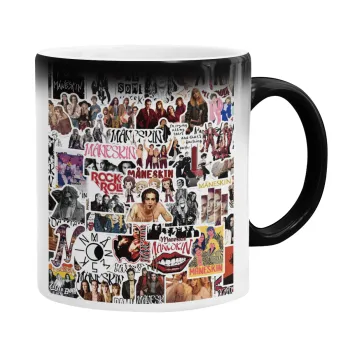 Maneskin stickers, Color changing magic Mug, ceramic, 330ml when adding hot liquid inside, the black colour desappears (1 pcs)