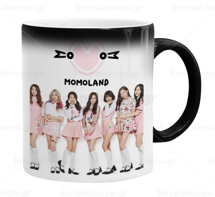 Momoland pink, Color changing magic Mug, ceramic, 330ml when adding hot liquid inside, the black colour desappears (1 pcs)