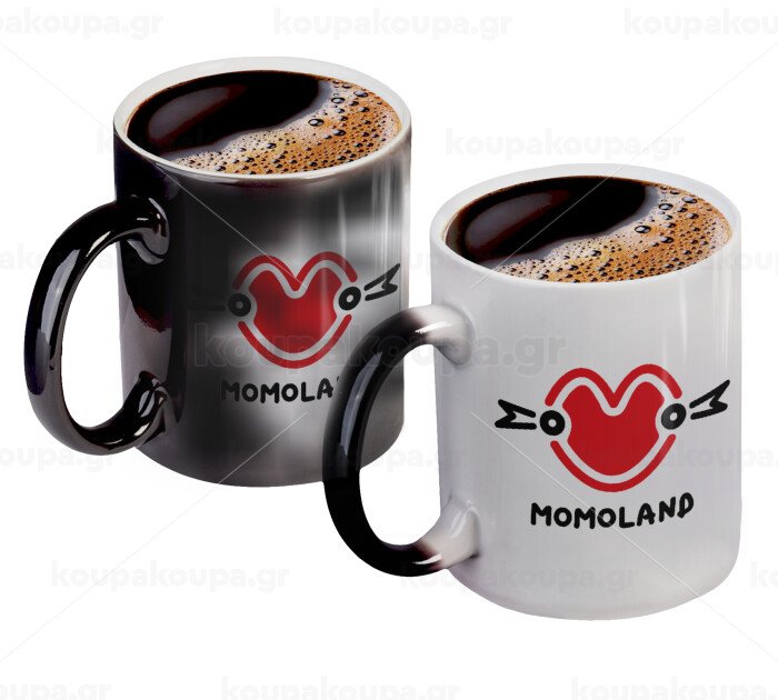 Momoland, Color changing magic Mug, ceramic, 330ml when adding hot liquid inside, the black colour desappears (1 pcs)