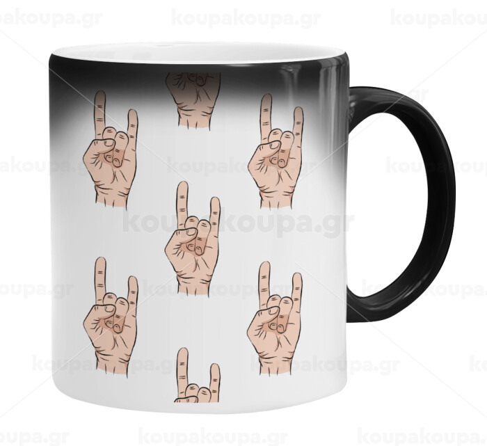 Rock hands, Color changing magic Mug, ceramic, 330ml when adding hot liquid inside, the black colour desappears (1 pcs)