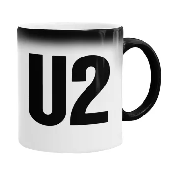 U2 , Color changing magic Mug, ceramic, 330ml when adding hot liquid inside, the black colour desappears (1 pcs)