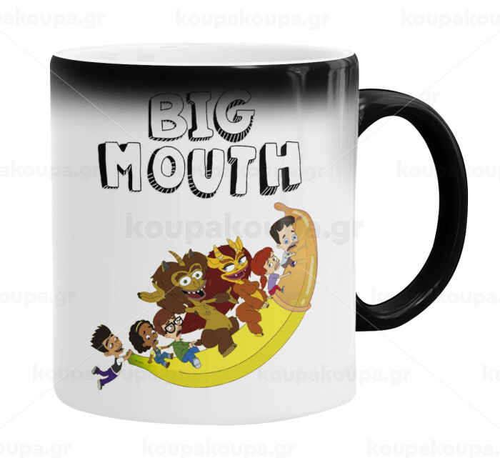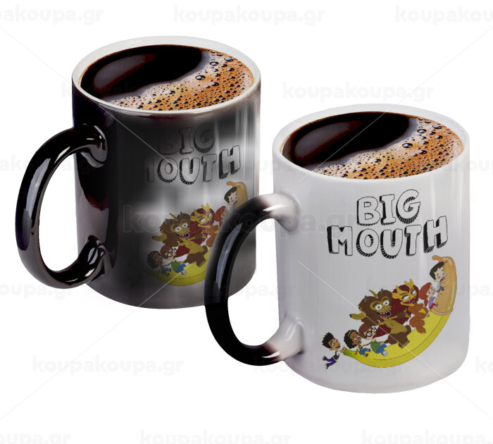 Big mouth, Color changing magic Mug, ceramic, 330ml when adding hot liquid inside, the black colour desappears (1 pcs)
