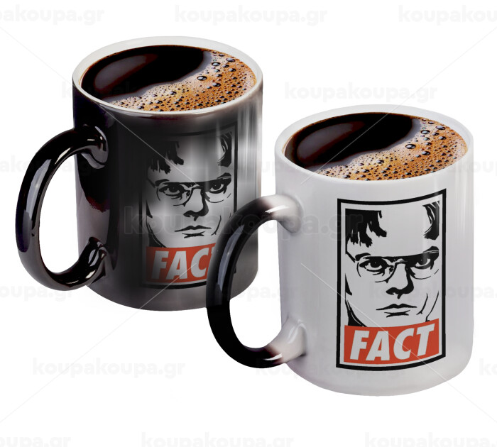 Dunder Mifflin FACT, Color changing magic Mug, ceramic, 330ml when adding hot liquid inside, the black colour desappears (1 pcs)