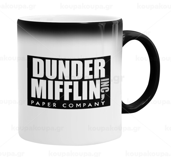 Dunder Mifflin, Inc Paper Company, Color changing magic Mug, ceramic, 330ml when adding hot liquid inside, the black colour desappears (1 pcs)