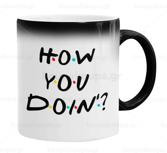 Friends How You Doin'?, Color changing magic Mug, ceramic, 330ml when adding hot liquid inside, the black colour desappears (1 pcs)