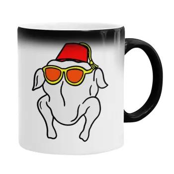 Friends turkey, Color changing magic Mug, ceramic, 330ml when adding hot liquid inside, the black colour desappears (1 pcs)